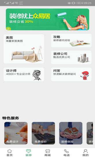众易居app是众易居装修网旗下的一款免费装修和便捷生活服务应用,为您提供装修报价、装修保障、购物、酒店、旅行、电影等贴心全面服务。