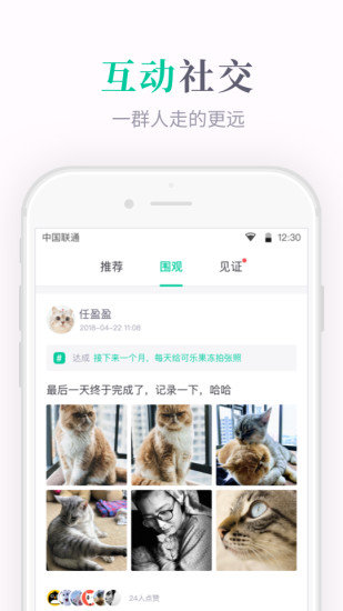 亲友可以围观、点赞、见证,督促你完成你决定的事