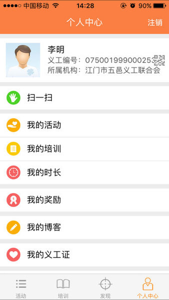 3.除此以外,义工参与活动的时候可以使用APP的扫一扫功能进行活动签到和签退