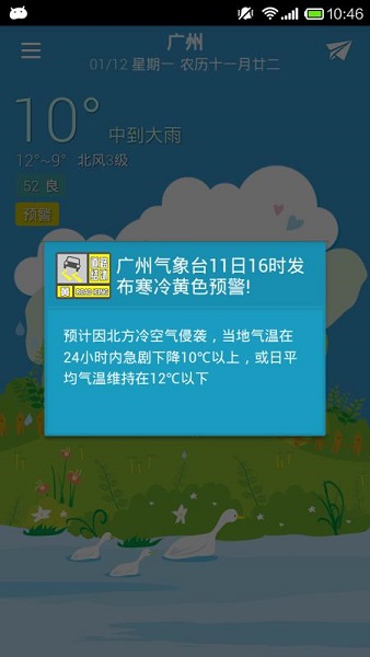 本地气象台天气预警消息推送,提前做好准备工作,保护身体健康