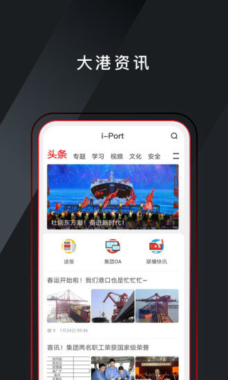 “i-port”是浙江省海港投资运营集团有限公司、宁波舟山港集团有限公司出品的一个集新闻资讯、服务、活动等多种功能于一体的一站式数字化应用。智能手机用户可随时随地查看浙江海洋港口,特别是宁波舟山港的实时资讯,同时便捷地享受本地及集团相关服务。