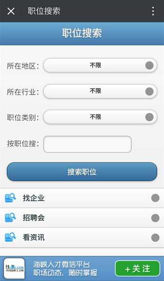 职位搜索,准确定位 可通过地区、职位关键字等条件快速搜寻、准确匹配意向岗位,