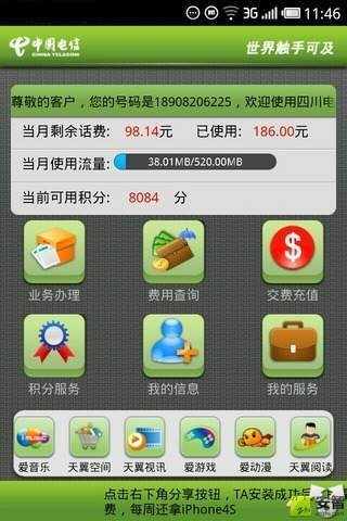 实时话费、历史账单、积分余额、套餐余量、已订业务、个人信息等查询,随时随地准确清晰