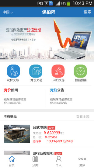 保拍网APP是一个受损货物残值处理平台,这里可以帮你处理各种受损的货物,进行估值和拍卖,让你变废为宝。保拍网隶属于上海保拍拍卖有限公司,是一个专注于受损保险标的货物残值处理在线议价和竞价交易的,面向各潜在企业用户和个人用户的综合O2O服务及移动互联网垂直交易