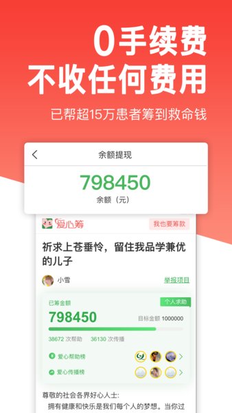 爱心筹是由病友社区慢友帮衍伸发展的自救筹款平台,筹款0手续费,不收任何费用。爱心筹希望以爱心和信任为基础,帮您完成所需的大病求助,让善良温暖的人们来帮你众筹。