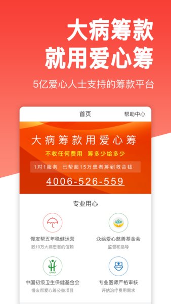 1、专业大病筹款,基于熟人社交的爱心众筹平台。