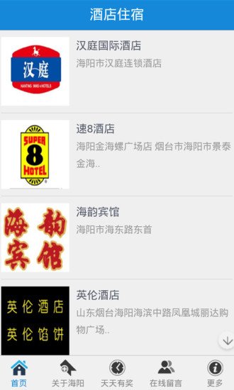 海阳信息港欢迎各界人士前来浏览下载。海阳信息港是移动互联网的领头军,集海阳本地生活服务、便民资讯为一体的智能手机客户端。在这里可以找到关于海阳信息港的所有相关信息,通过整合互联网资讯、行业应用、全城商家资讯,全方位打造海阳信息港门户,为用户提供包括海阳房产信息、二手车辆、招聘求职、家政服务、交友征婚、货运物流等各种供求信息。为用户提供最及时最全面的生活信息。