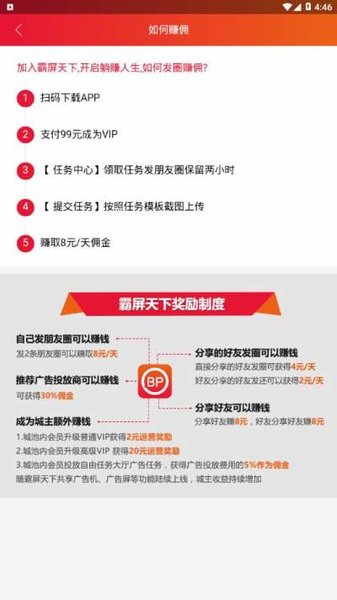 直接分享的好友发朋友圈可以获得4-8元/天,好友分享的好友发圈还可以获得2-4元/天。