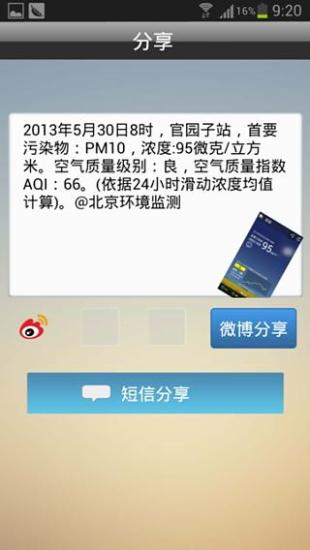 北京空气质量由北京市环境保护监测中心官方发布。该软件可为浏览者提供北京市35个空气质量自动监测子站的实时空气质量指数等评价结果、健康和出行提示、历史浓度变化以及预报信息。用户可通过定义兴趣点的方式实现对自己最关注点位空气质量信息的快速访问,还可以通过定位功能获知自身所在位置附近的空气质量。