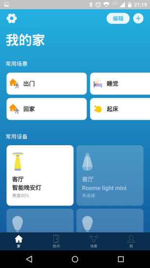 Roome智能app手机版是Roome全系列产品智能配置app辅助应用,创造新一代智能家居体验无论身在何处,随时随地与家连接对话,灯光唤醒延时关灯定时开灯满足一切智能家居需求,人性化的场景功能更简洁界面更方便操控。