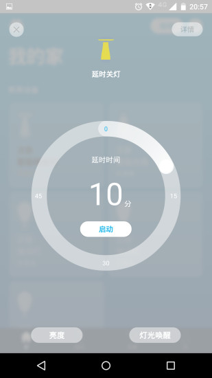 延时关灯:点击按钮开始延时关灯,可以在设置中选择延时关灯的时间。