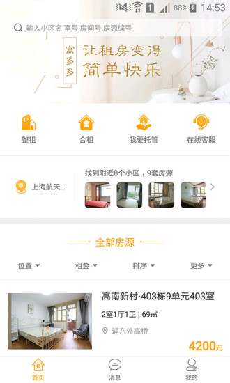 寓多多app是为上海拼搏奋斗找租房的小伙伴提供一站式公寓社区,帮你快速找到多变时尚装修风格公寓,智能安全门锁WIFI全覆盖,贴心五星级管家双周保洁上门维修家电水电气,最主要是免中介费哦。