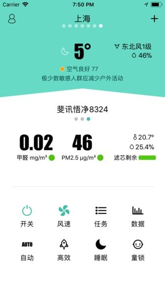 斐讯空能净app是配合空气净化器使用的智能控制app,用户可以在手机上查看所有的数据,远程启动净化器来清洁空气。并且还能实时监控空气质量,快速针对不同的环境来应对。