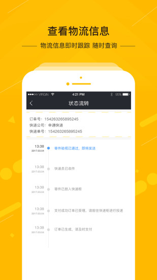 历史订单:查看已完结状态(签收、拒收)的包裹信息